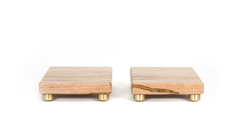 Our Speaker Plinths shelves are air-dried Ambrosia maple and our hardware is machined from an optimum-sounding brass alloy, simply because our tests show any other materials would degrade sound. However, we offer a variety of handsome maple and brass finishes to suit a wide range of decors.