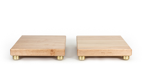 Thus many if not most perceived room problems are actually caused by inadequate or really bad-sounding floors. Instead of spending thousands on room acoustic treatments that fail to address the root problem, Mapleshade offers an evidence-based and guaranteed upgrade for any floor: drain your speakers' vibrational energy, not into the floor, but into massive maple platforms rigidly mounted above the floor via large, screwed-in brass footers. First and foremost, maple provides an audibly better, cleaner sounding sink material than pine, spruce, cherry, walnut or oak floors. Equally important, these 2" (or 4") Maple Speaker Plinths provide 2-2/3 (or 4-1/3) times more mass to dissipate vibrations—and vastly more rigidity—than even good solid wood floors.