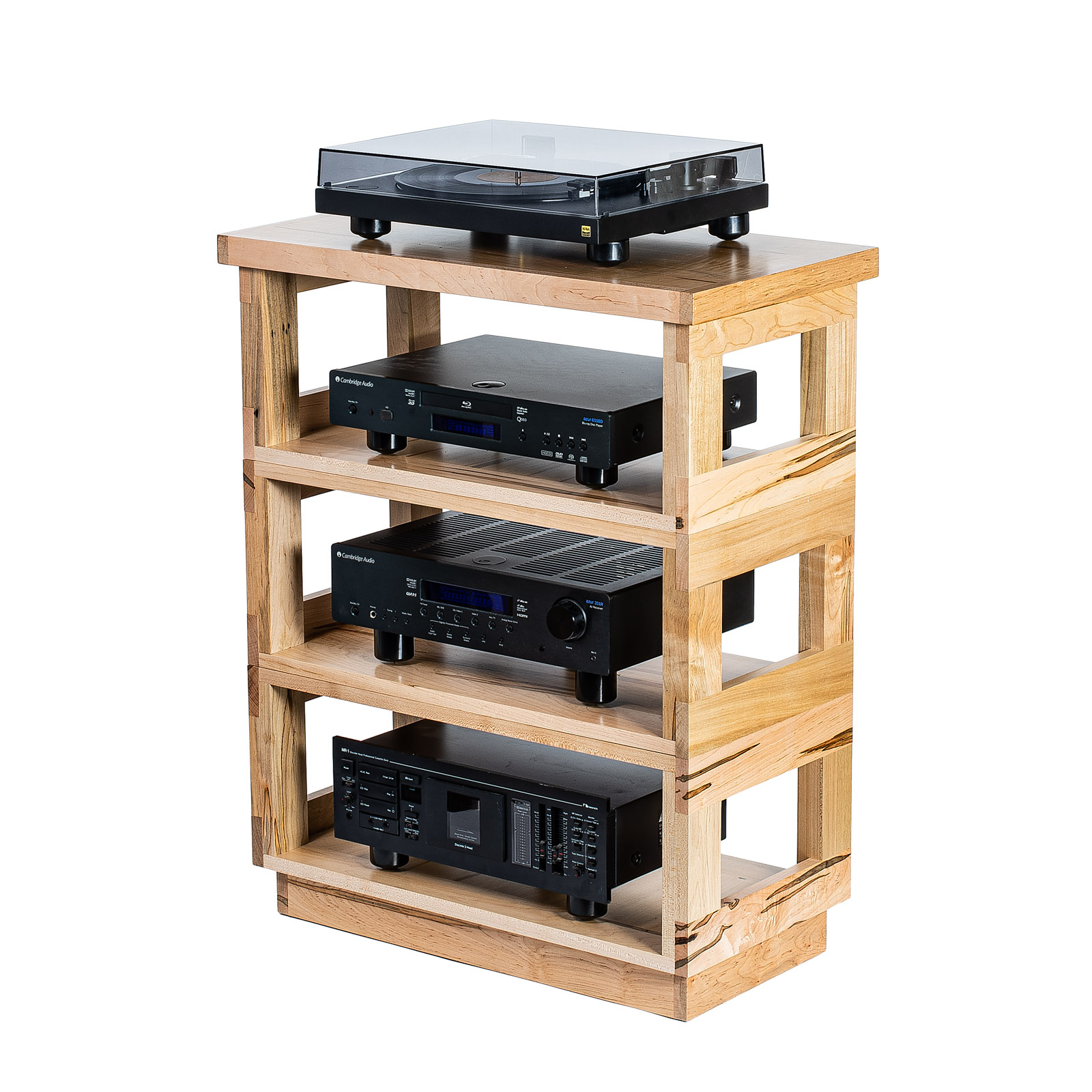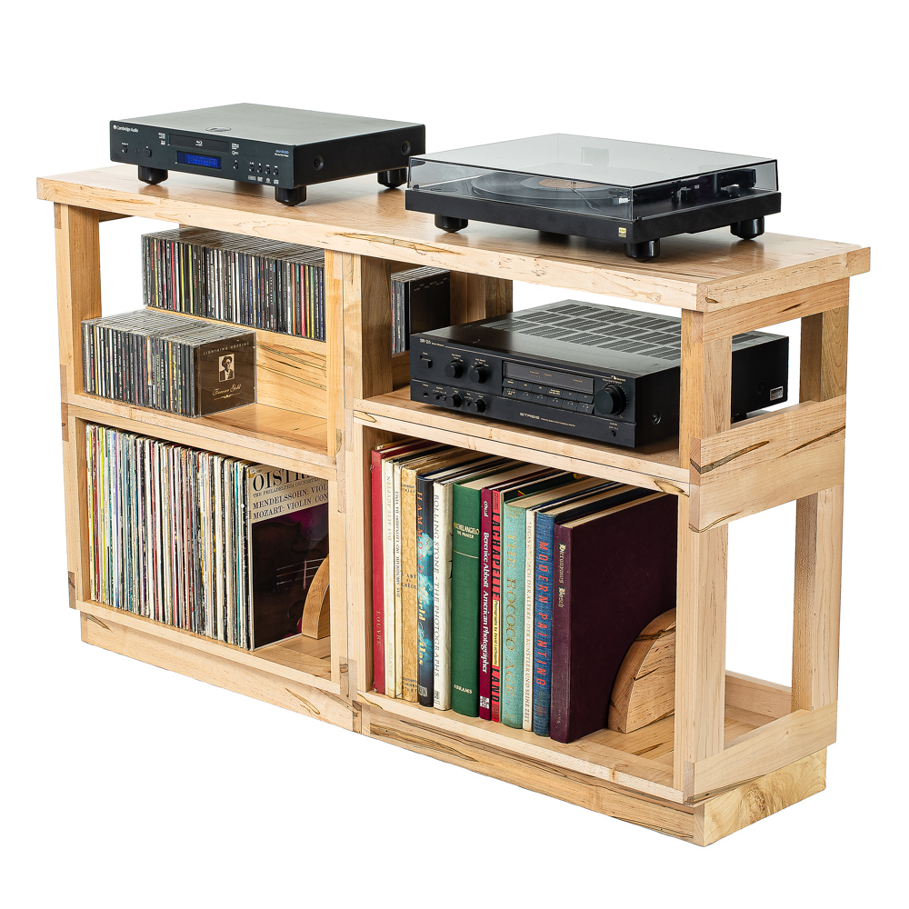 Our distinctive Ambrosia maple shelves tops and accessories are handsome storage for music, movie and book collections as well as distinctive modular furniture adaptable for audio-video and myriad other uses. A family of Amish craftsmen meticulously handcraft each module from from old-growth Ambrosia maple with clear satin finish to match our air-dried Platforms & Component Stand, speaker stands and SAMSON racks.