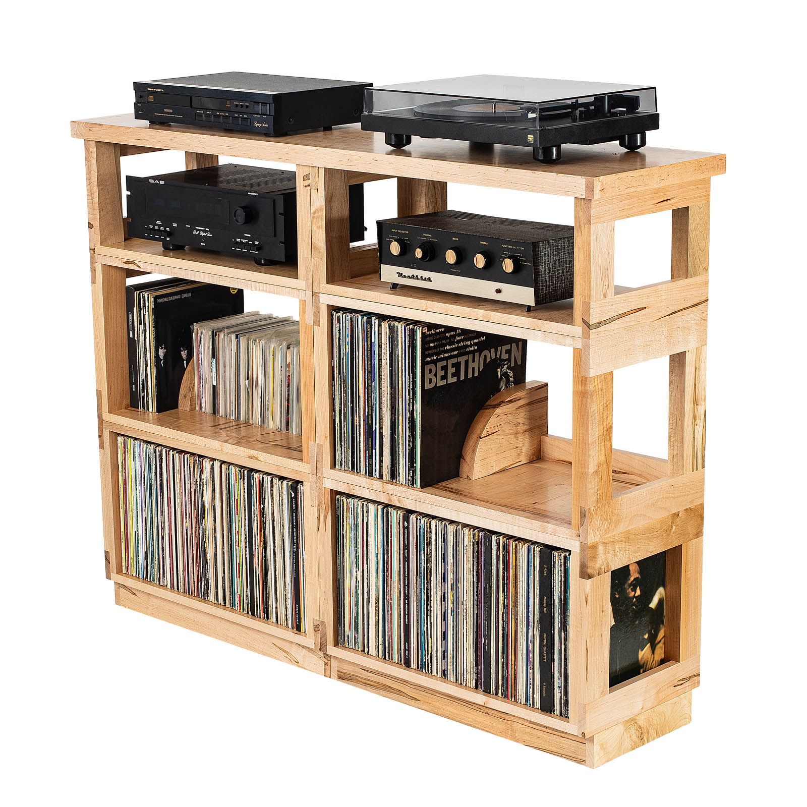 • MAPLE HEIRLOOM 2 MODULES are our premium shelves for storage. These modules feature 3/4" solid parquet bottoms that support any record size and offer myriad other functional storage possibilities. Offered with optional solid parquet top.