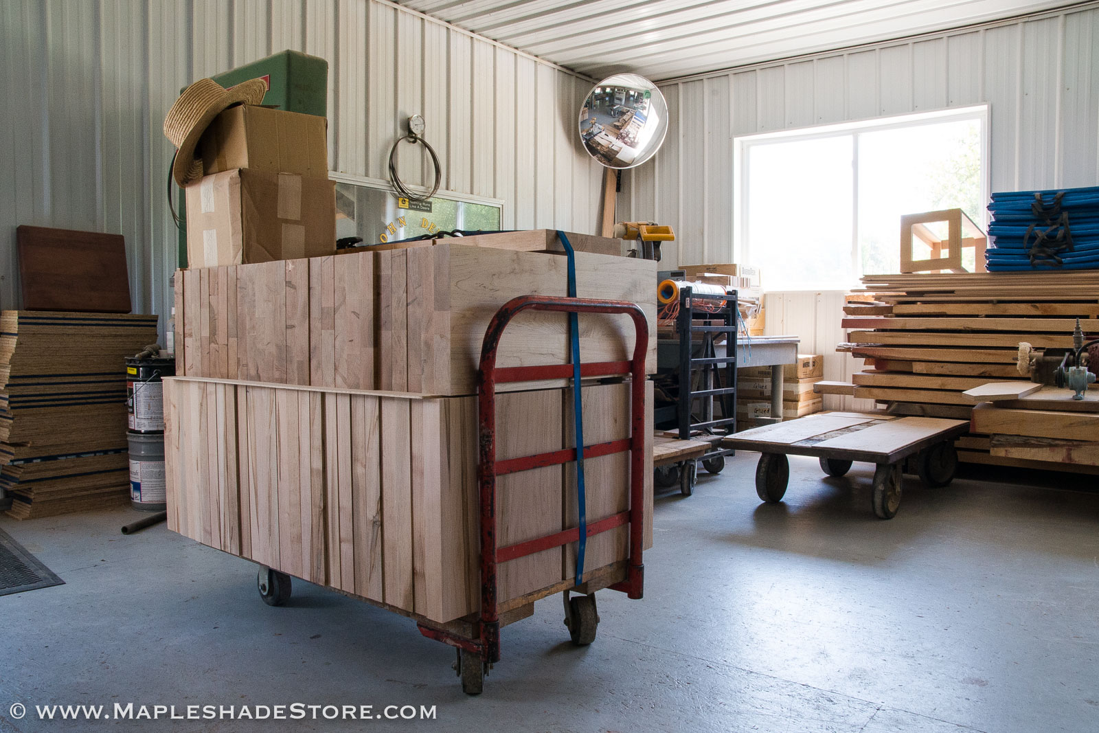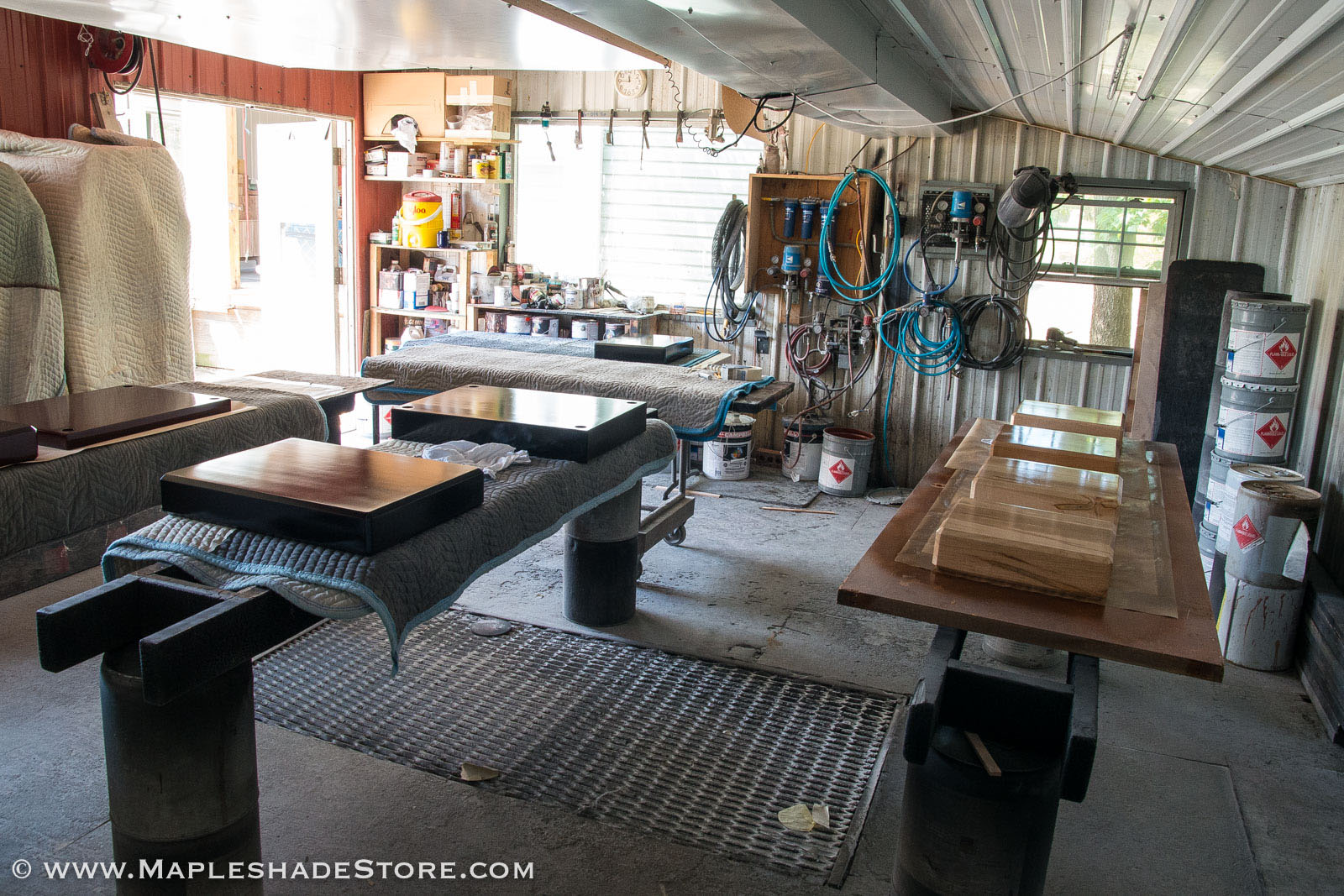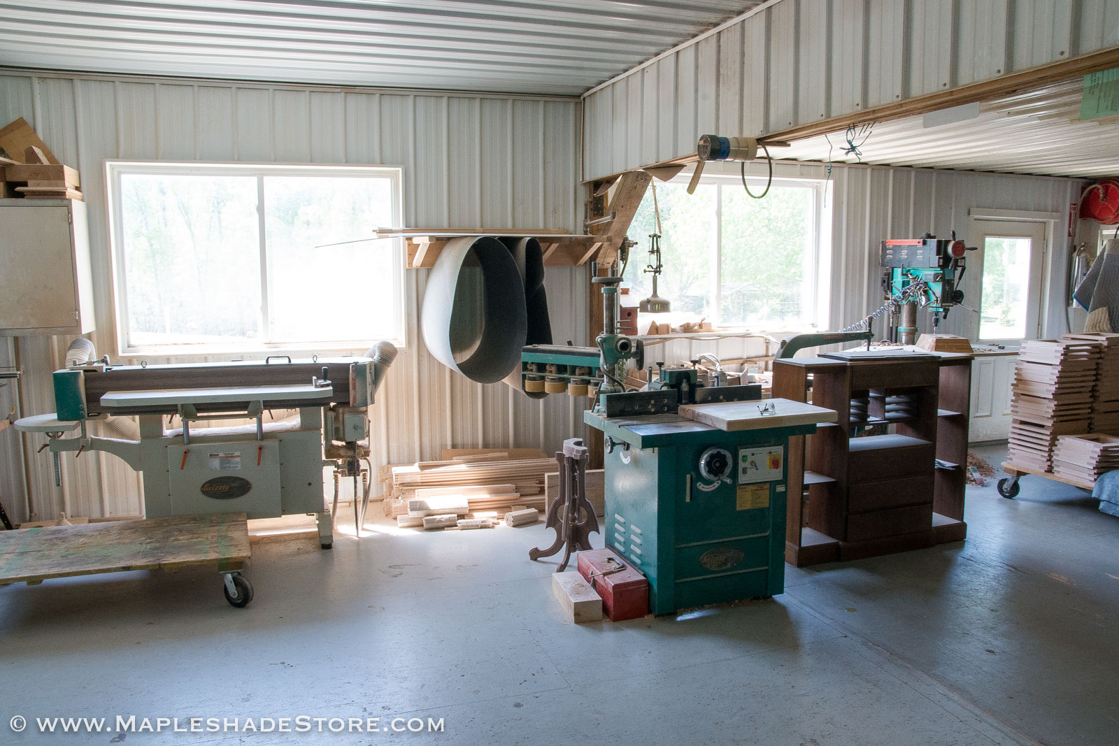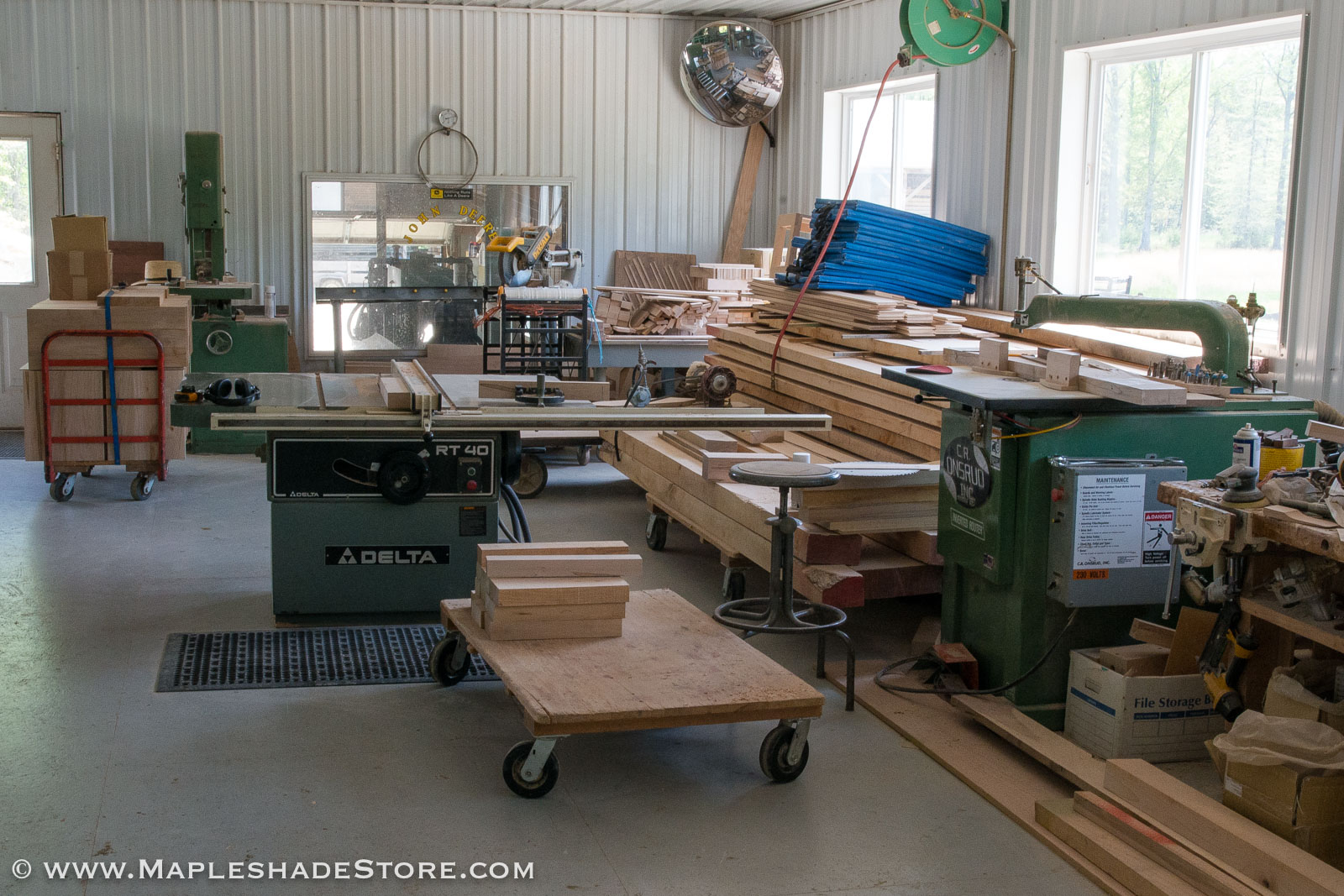 All of Mapleshade's air-dried Maple platforms, speaker stands, SAMSON audio racks and modular furniture are locally manufactured by an Amish family in Southern Maryland. Their shop uses contemporary woodworking machinery that has been modified to run using 1500 psi hydraulic power.