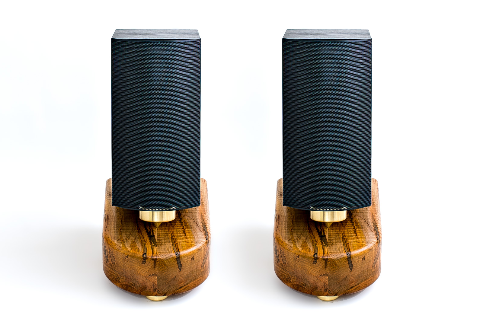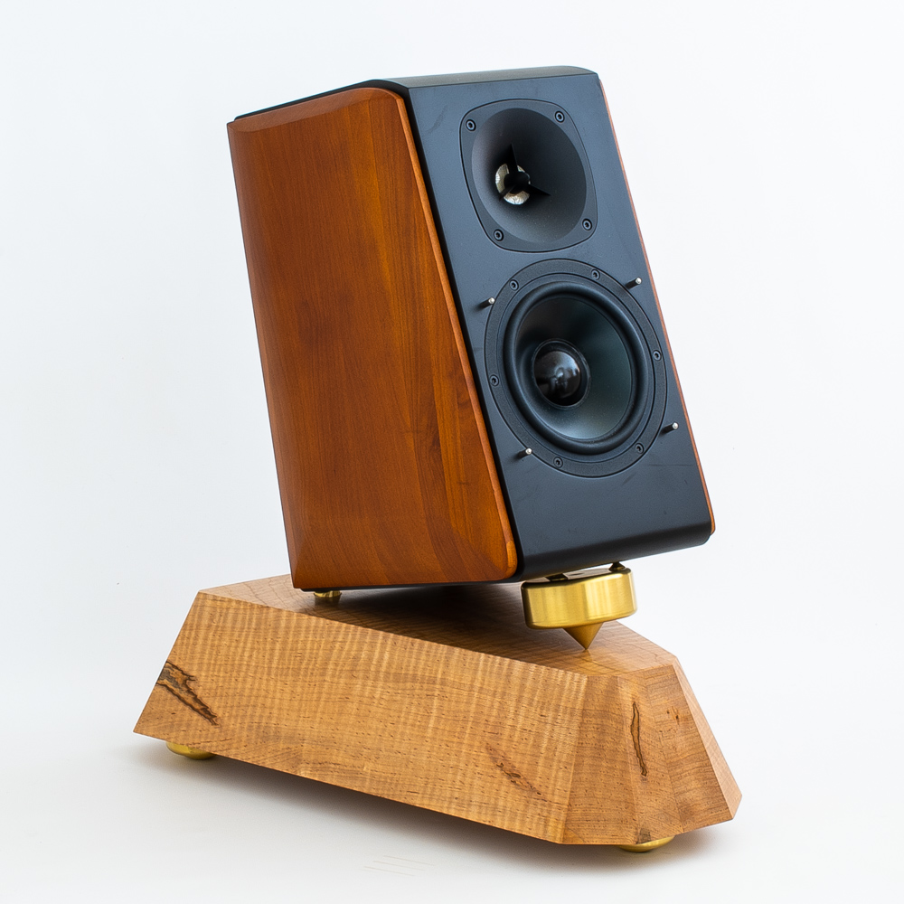 In addition to our stock Bedrock Ultra, we offer several made-to-order base designs tailored to match different speaker shapes and room decors. Every pair is made-to-order using carefully matched, handsomely variegated 4" Ambrosia maple, hand-selected by Crist or Uri.